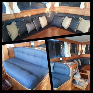 Want to update your boat or add your our personal touch to your yacht? Look no further. From pillows on your fly bridge to a new salon or a custom berth. We offer quality craftsmanship on all fronts of our custom upholstery. Specializing in Sunbrella products no job is too large or too small!